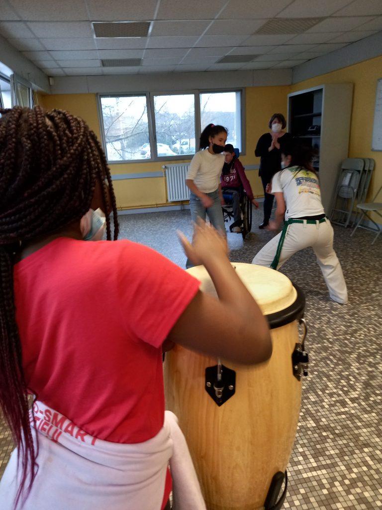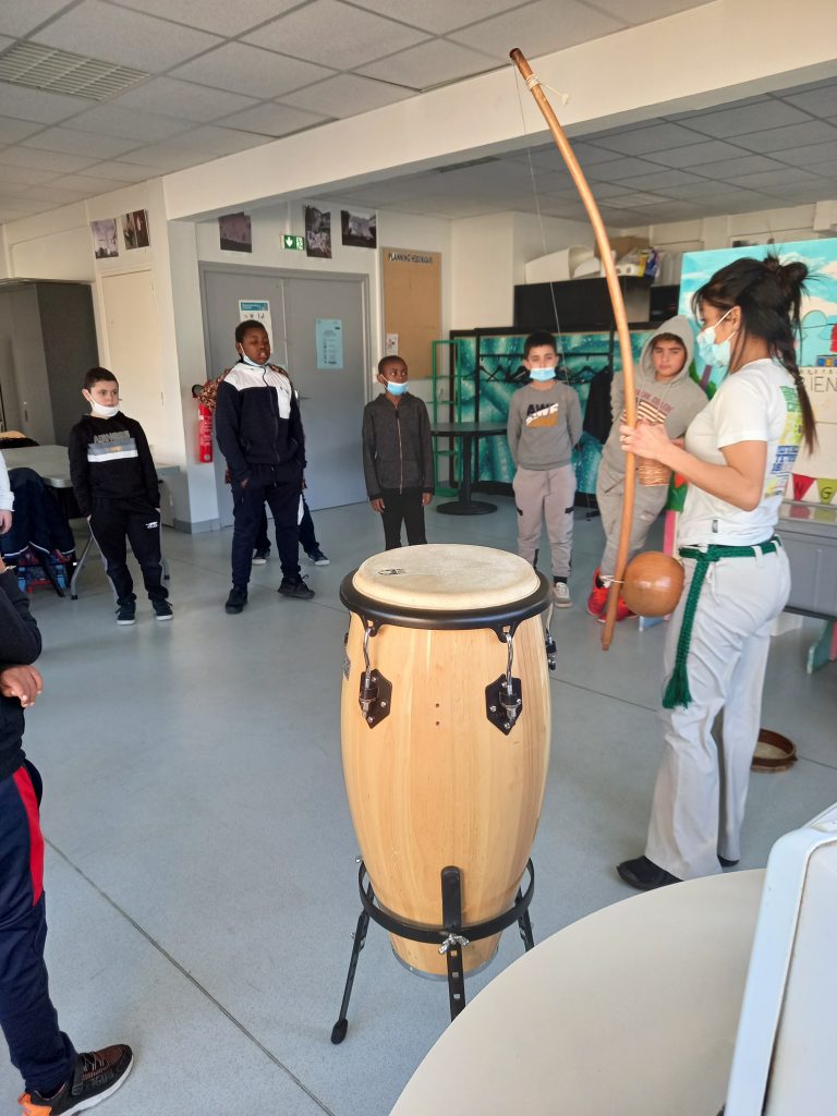 Pour la 2ème année, Donia est venue partager avec nous sa passion de la Capoeira. L’occasion de parler de l’esclavage, de découvrir un art martial et les règles de respect qui vont avec mais aussi de découvrir les instruments de musique que l’on ne connaît pas….